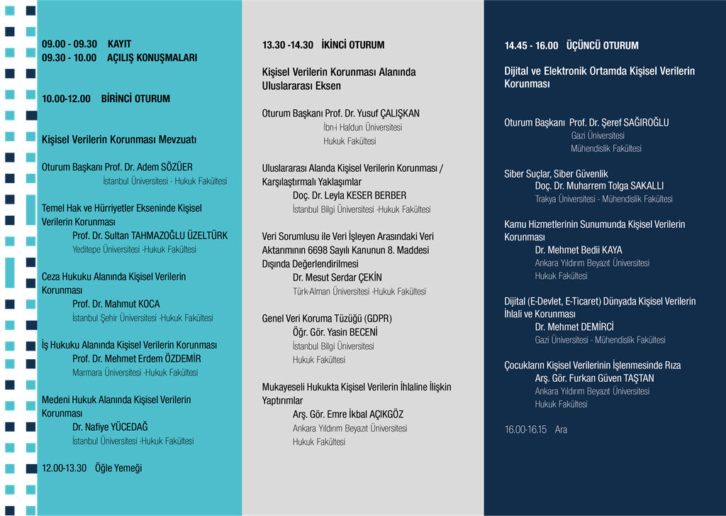 konularını kapsayan, bu alanda çalışmaları bulunan çeşitli üniversitelerden gelecek değerli akademisyenlerin de katılımlarıyla düzenlenecek olan KİŞİSEL VERİLERİ KORUMA SEMPOZYUMU’na dair program ve otel bilgileri aşağıda belirtilmiştir.